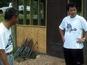 午前中は小走りで動くぐらい仕事が多い。趣味の鶏(チャボ・徳地など)だけでも50羽近くいるし、営業用は1300羽いる。餌だけでも140キロ近くをバケツで各鶏舎にばら撒き、タマゴを1000個近く集めながら、その検査をして割れて廃棄するもの、汚れて格落ちのもの、通常のタマゴなどに選別する。それを11時過ぎにはトラックに積み込んで、片道40分お店に運ぶ。先日はお店まであと2キロというところで、睡魔に負けて路肩に停車。10分寝たこともある。午前中が勝負である。 近くの商店から100個ご注文があったが来られないので、その100個も積んで農園を出た。近くの中学校のお得意様(先生)から30個の注文がありったので、商店経由の中学校、最終はお店というコースになる。愛犬が毎日助手役をつとめる。 10時にとりに行きます。というお店に行くと「あ!忘れていましたー」とおばさんが言う。配達してよかった。中学校の事務室に預けにいくと、たくさんの注文がきており、トラックから箱に詰め替えてお受け取りいただいた。商店と学校で売り上げたお金が6000円ぐらいポケットにはいった。 自宅で昼食。家内が魚のミンチと豆腐で味噌汁をつくってくれおお喜び。食べてすぐ寝る。起きたら1時半。話し声が階下で聞こえる、スペシャルオリンピック山口のみなさん4名が、我が家で事務的な仕事をしてくださっている。少しご挨拶してお店で、タマゴの容器にラベル貼りをする。 加藤先生ご紹介の和菓子屋さんが「いいカステラが焼けました」と元気タマゴで焼いたお菓子をもってきてくださった。そんなことをしながら、農園に帰りにスーパーに立ち寄り、今夜の食材を買い求めた。スペシャルさんの内田さんと店内で挨拶「自炊ですか」とわたしのカゴを見て驚いておられた。 夕食前にシャワーで汗とホコリを洗いおとして、ビール2本と焼酎で夕食を済ませ。オリンピックを観ながらウイスキィーを飲んでいる10時過ぎ、携帯電話が鳴った。下関の望月さんからだった「いまから行ってもいいですか」と。どこかと尋ねると、農園入り口の橋の上だという。 彼は中小企業家同友会の下関代表で、今夜は会合が山口市であり、帰りに立ち寄ってくださった。少し酔っていたが話し相手がいないので熱烈歓迎。 彼は、わたしの鶏をどう製品化するか。ということについて具体的に考えてくださり、かなり面白い提案をしてくださった。といっても彼の商売にメリットがあるわけでもなく、真にわたしのことを心配してくださり、いつも考えてくださったので具体的な提案をしてくださる。下関まで1時間かかるのに、わざわざ立ち寄ってくださり本当に嬉しかった。11時過ぎ、彼の車は橋を渡って消えた。 筋書きのない毎日のなかで、たくさんタマゴを買ってくださった先生方や、商店のおばさんの笑顔。望月さんの来園と、気持ちを励まされて一日を終えた。ありがたし。 00/09/28(木) 05:34 六さん(JAG07563) |